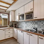 - ❓Is there a kitchen available at this apartment for guest use?Yes, this apartment is furnished with an equipped kitchen and offers coffee and tea making equipment, a fridge, and glassware as well.