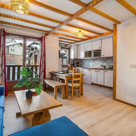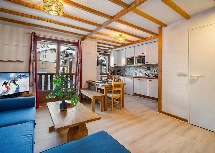 This apartment is 2.3 km from Plateau Ski Lift and Grand Fond Ski Lift is 2.4 km away. The Gebroulaz Glacier is a 10-minute drive from the 50 m² apartment.